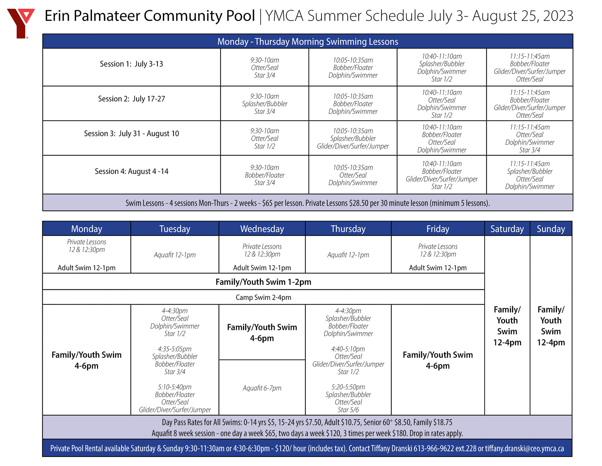 For more information on the Erin Palmateer Pool Schedule click here.
