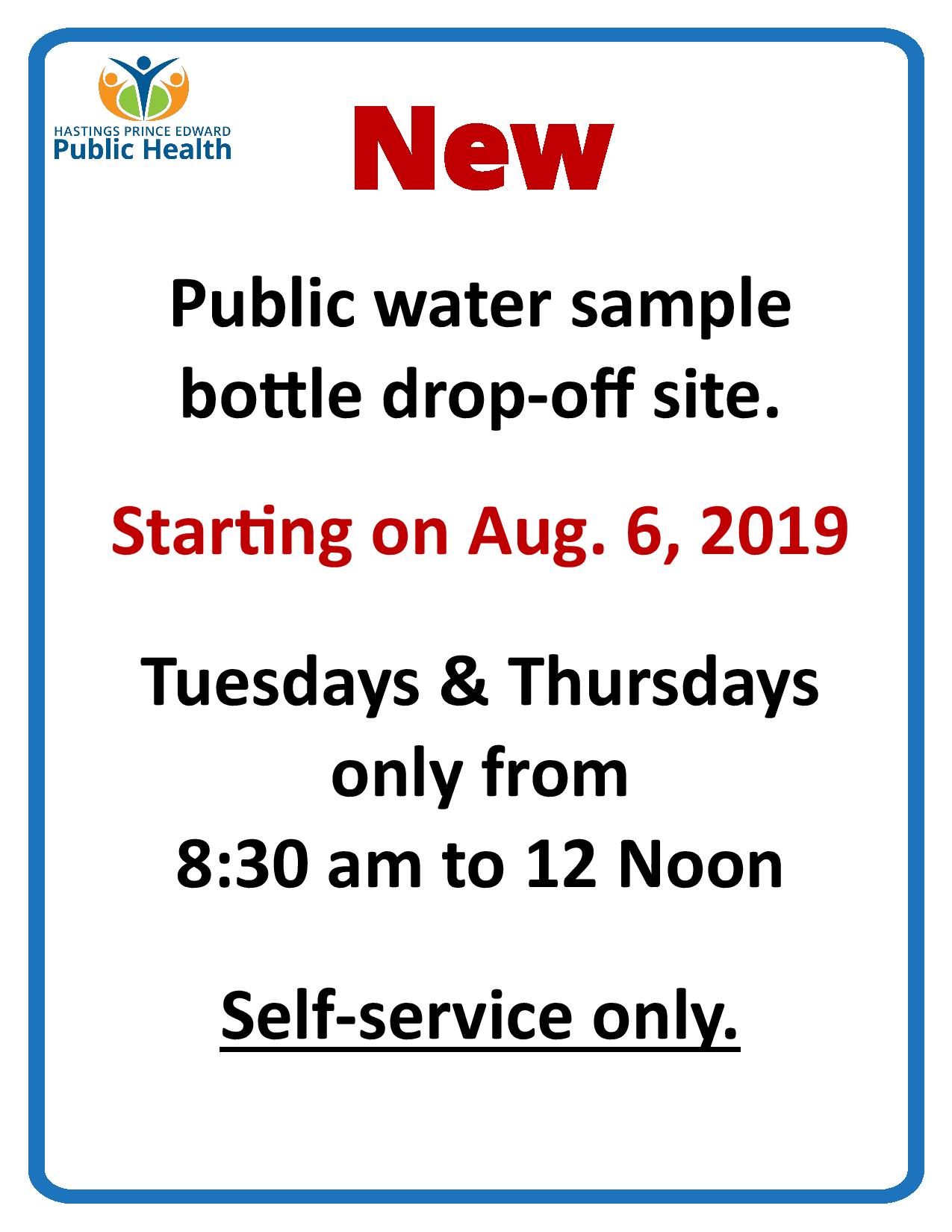 Beginning on Tuesday, August 6th you will be able to drop off well water samples at the Tweed Municipal Office at 255 Metcalf Street. It is important that your paperwork with the sample be completed in full.